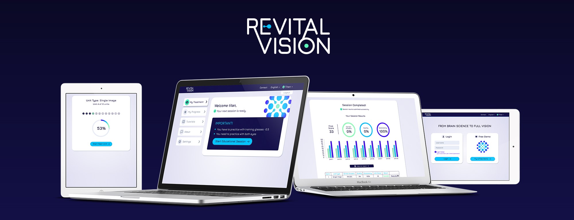 We are happy to announce the release of our new web vision training software application with RevitalVision new branding. This advance software, which is designed to improve vision by improving the brain visual processing, is easier to use and provides better patient feedback.